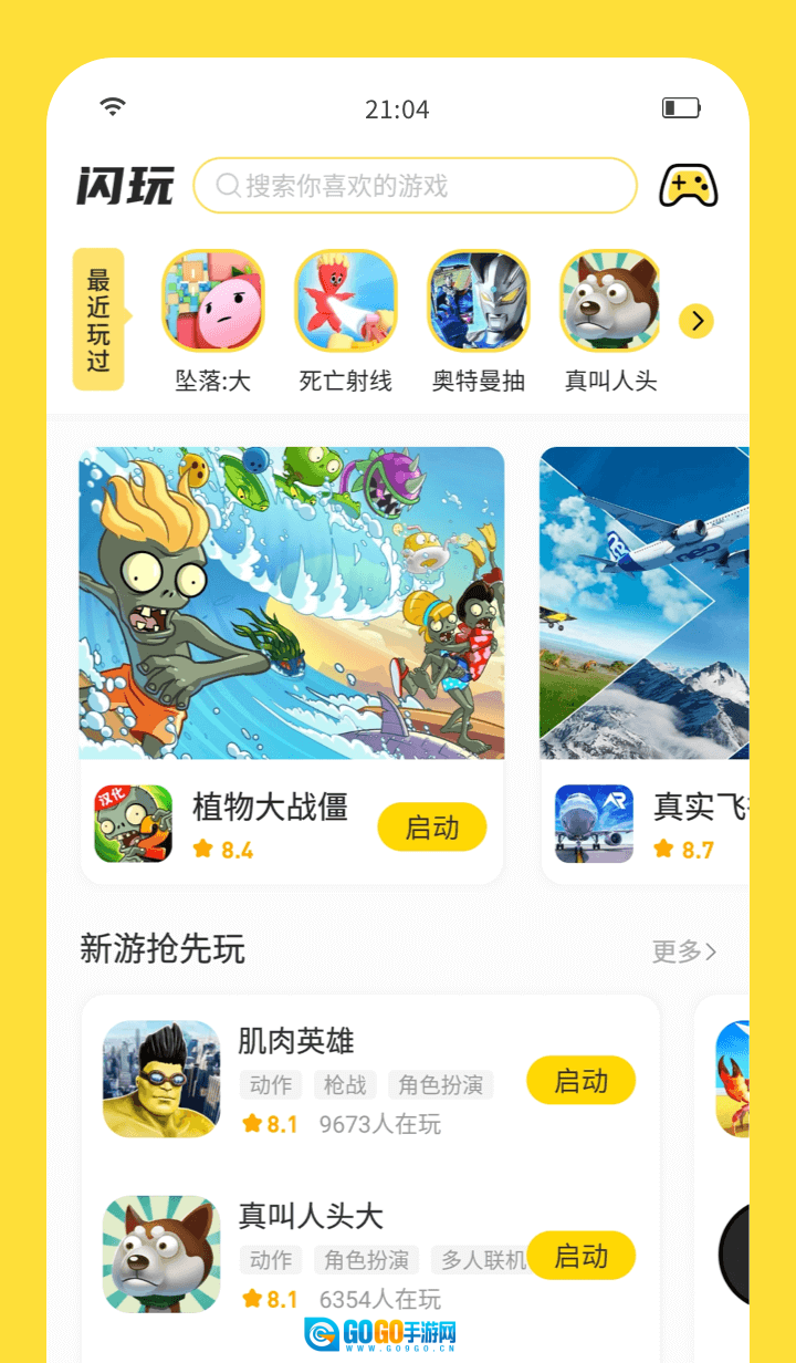 1、在本站下载闪玩App并打开软件,进入首页后,便能看到众多热门游戏。