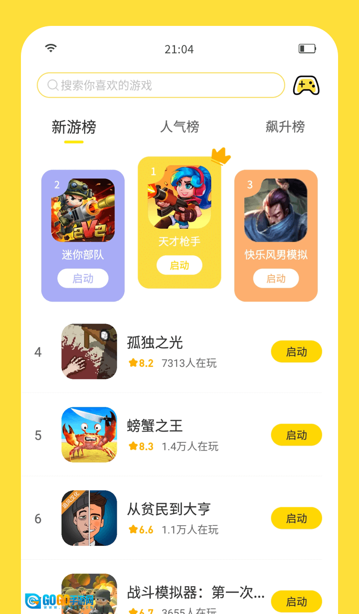 6、当你找到自己喜欢的游戏后,只需点击启动,就能免费畅玩。