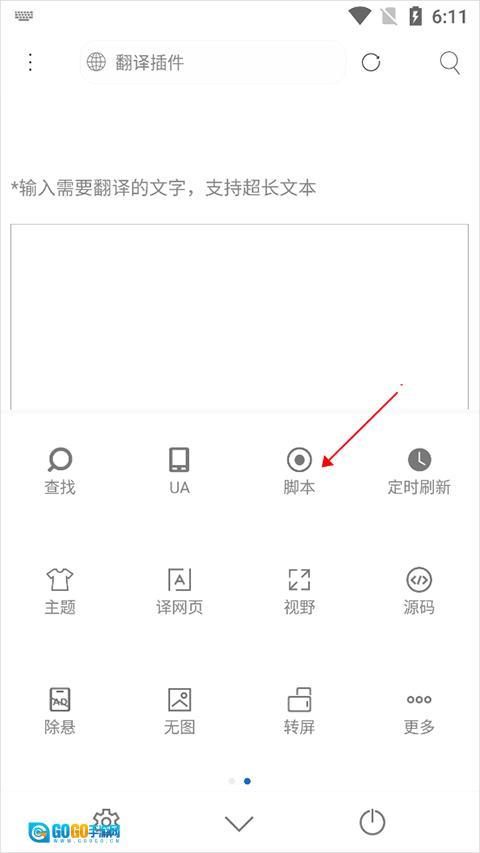 1、首先打开界面,接着选择点击底部的扩展功能图标,随后点击【脚本】