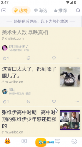 1、当进入抽屉应用的首页,在热榜区域能够浏览到最新更新的内容,进而知晓当下最受关注的话题和帖子。