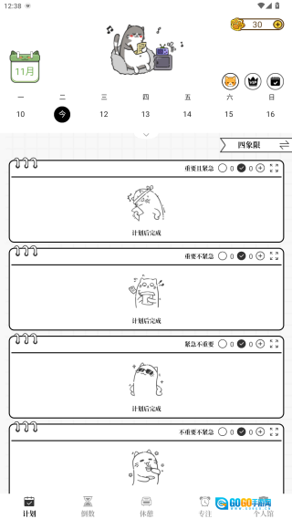 计划喵是一款拥有可爱画风的时间管理软件,具备日程管理、任务清单、提醒、番茄钟以及笔记等核心功能。在这里,你能够创建任务清单,对各项任务进行分类与排序,并设定优先级,从而高效地规划个人时间。之后,还能设置提醒时间,防止错过重要事务。而且,无论何时何地你都可使用,完全不必担忧兼容性方面的问题。