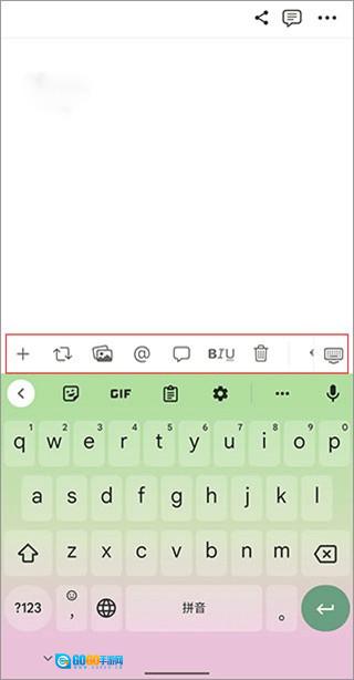 2、进入编辑界面后,先输入标题内容,然后点击下方的文本区域,此时能看到输入法上方弹出工具栏。