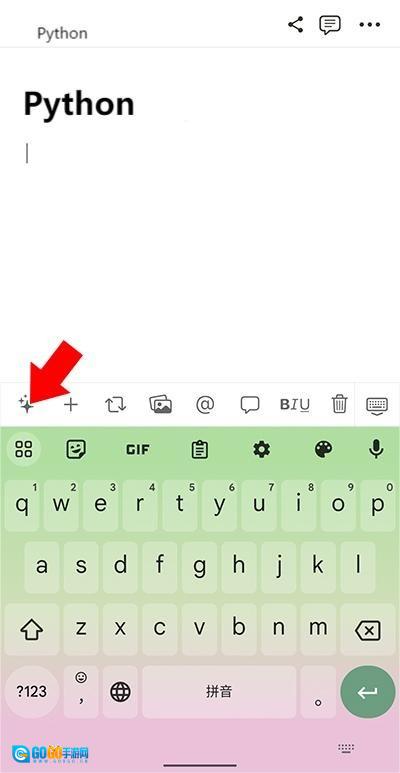 2、用户进行文本编辑时,工具栏会显示在输入法上方。点击工具栏的首个图标,即可开始使用AI功能(如下图所示)。