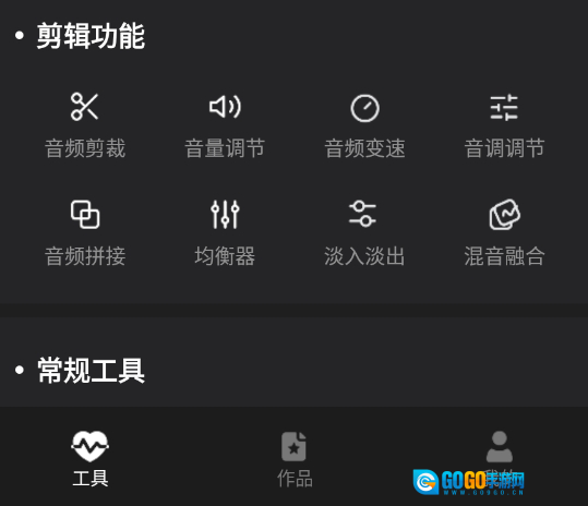 2、提供音频裁剪以及音量调节,变速处理以及音调设置调节等,十几种功能。