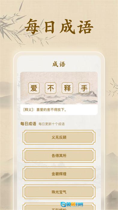 4、极致的学习体验,掌握到更多的成语含义和用法,帮助用户积累更多的知识。