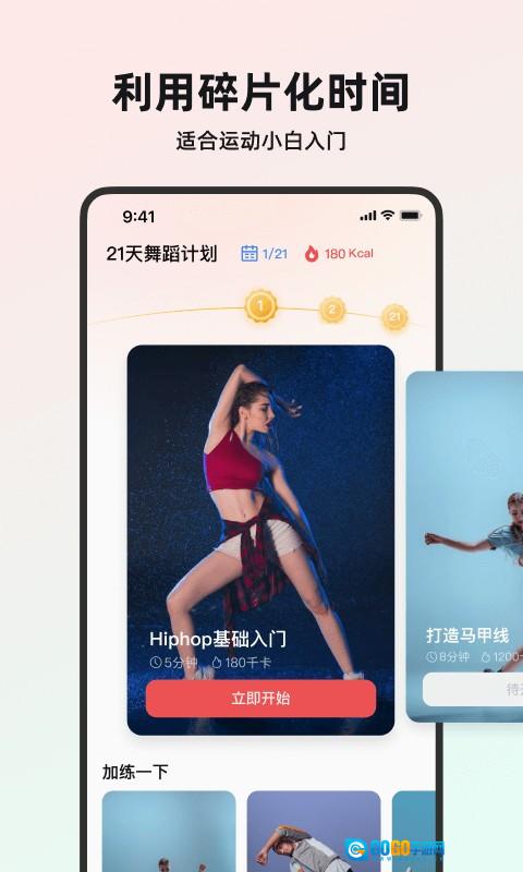 1、特别为您定制燃脂塑形运动操,就算您毫无基础,也能轻松跟上专属课程节奏,尽情舞动起来。