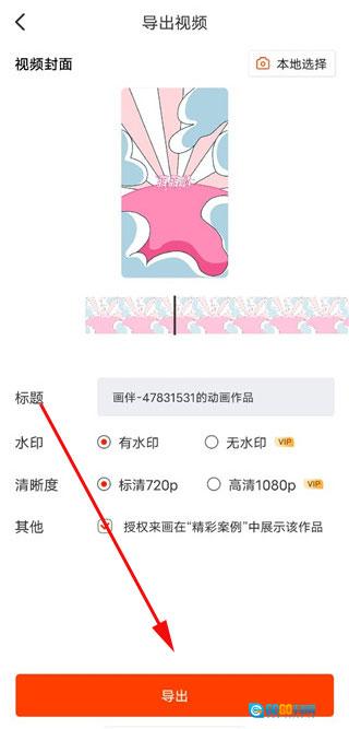 5、接下来,你能够自行挑选视频封面、设定标题等,全部设置完成后,点击下方的“导出”按钮。