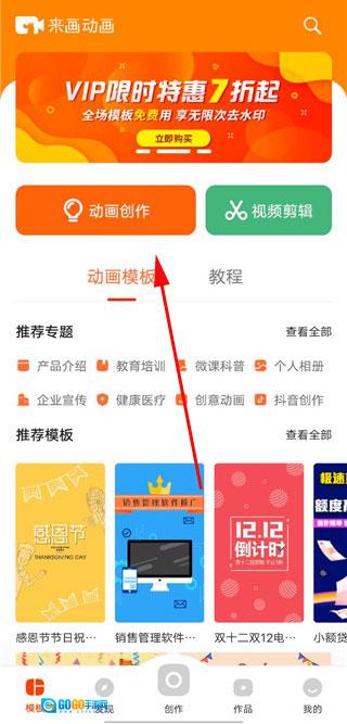 1、打开软件后,点击“动画制作”。