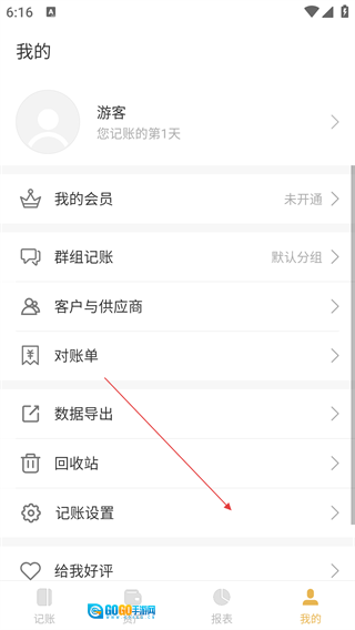 2. 于个人页面点击【记账设置】,即可进入设置界面,在此页面能够对会员、群组记账等功能进行设置。