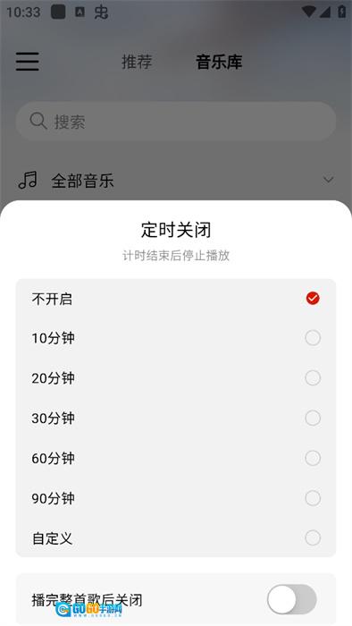 3、也能够设置定时关闭,如此便能限定听歌的时长。