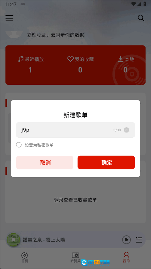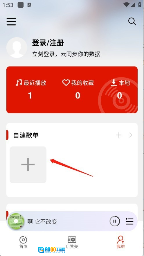 1、你能够创建歌单并添加喜爱的歌曲,还支持分享给其他用户收听。具体操作是,进入首页后点击“我的”,再点击“+”。
