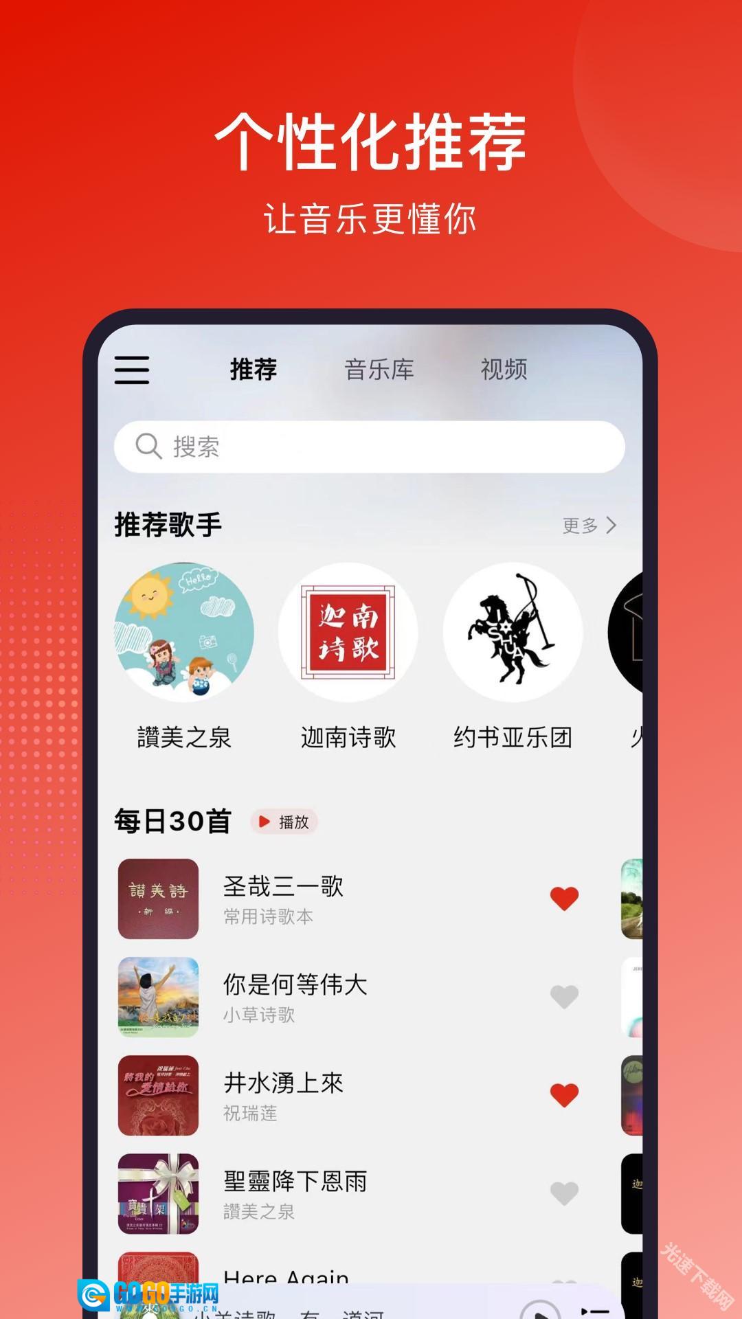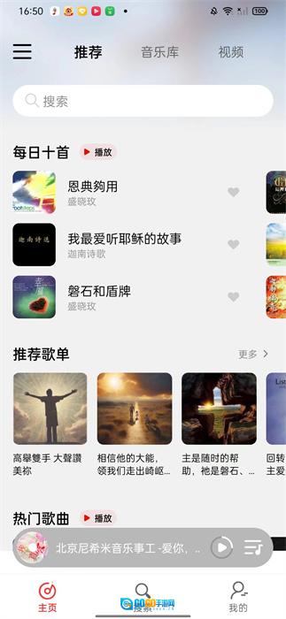 1、这里面有大量音乐可供收听,主打各类赞美的诗歌音乐。