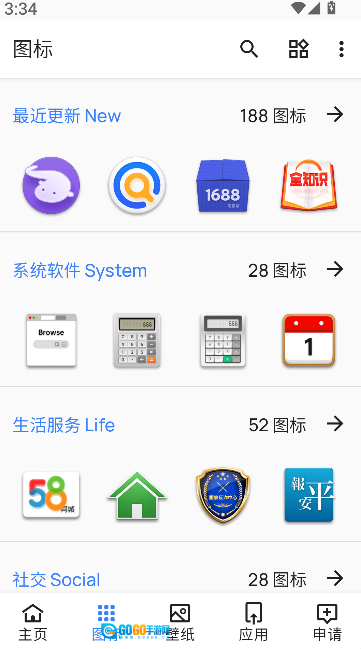 2. 点击进入图标板块,在这里能够浏览到各类图标主题,你可以依据个人喜好挑选所需的样式。