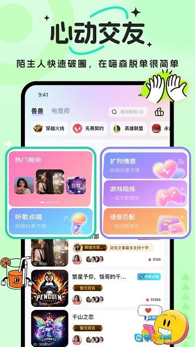 1、兽兽是一款聚焦声音社交领域的安卓应用程序,借助语音互动的方式,为用户打造出别具一格的交友体验。