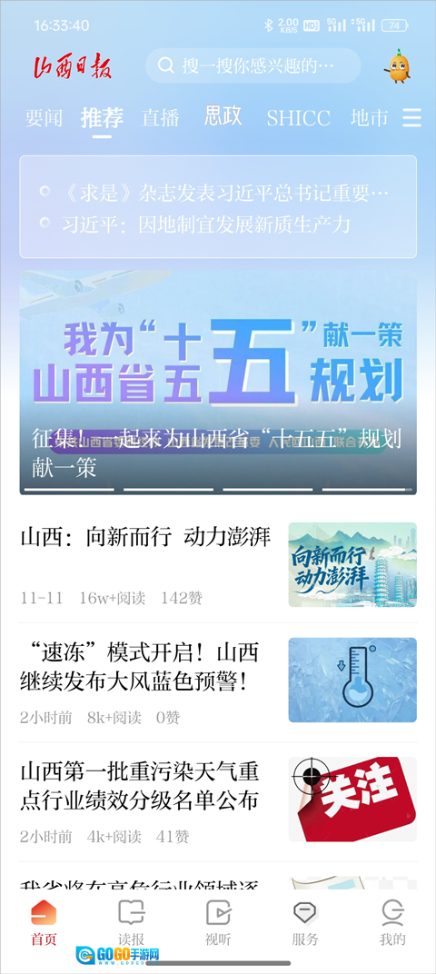 汇聚权威资讯及本地热点,人民日报、山西日报的要闻同步进行更新。新闻板块分区明确,支持以图文、专题、视频等多种形式展现,使得用户一打开App,便能迅速获取当日最为重要的信息。