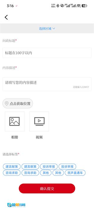 3、挑选问政地区,并按要求输入相关内容,随后点击提交就行。