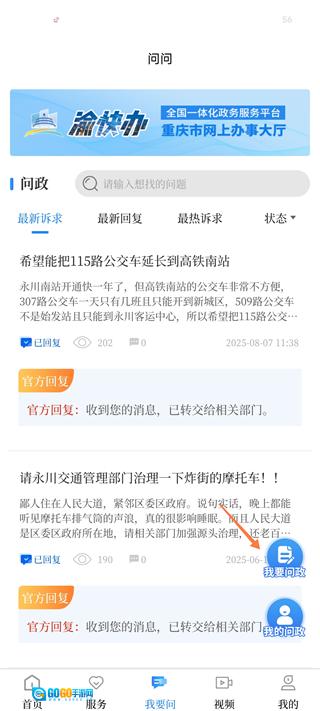 2. 前往问政板块,点击右下角的【我要问政】按钮。