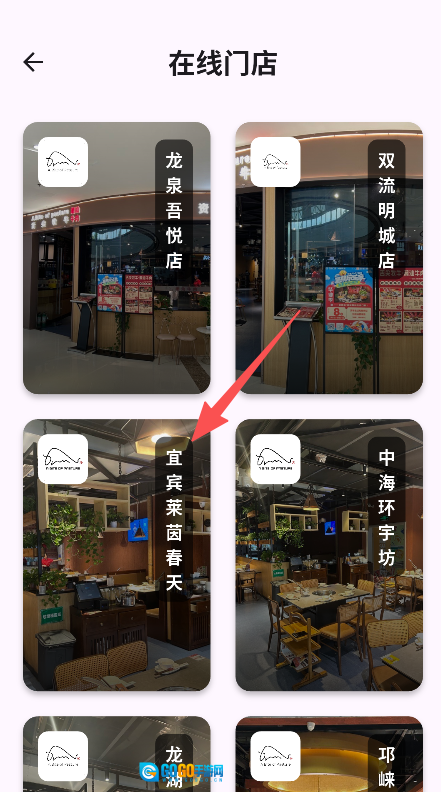1. 在线门店信息一目了然,各门店的图片与名称清晰呈现,食客能够迅速识别目标门店。