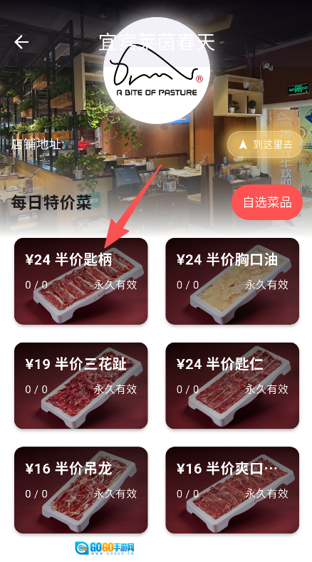 3、您可自主挑选菜品,于目标门店内挑选钟意的菜品,完成就餐前的选菜环节。