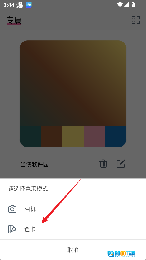 2. 随后选取“色卡”,进而进入配色编辑界面。