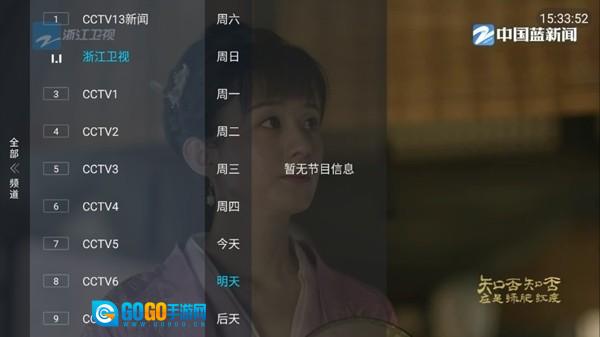 3、在此,你能够自主挑选心仪的电视频道进行切换,就像小编在这儿选择了浙江卫视。