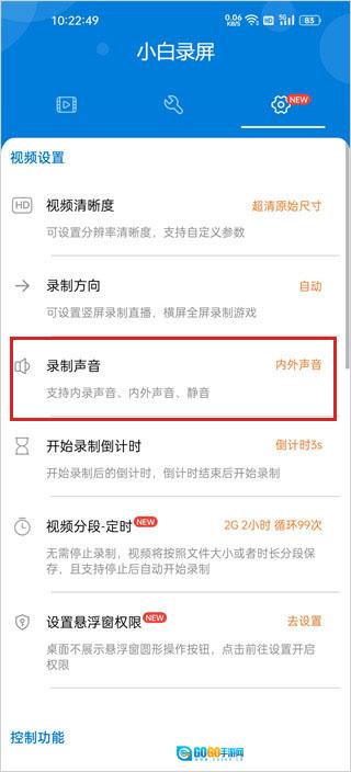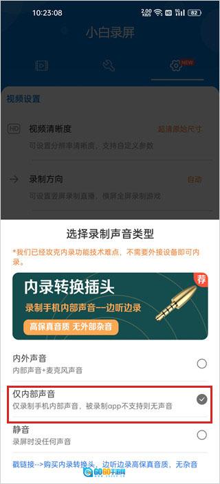 2、音质设置:支持内外声音、麦克风、内部声音、静音模式,支持分别调节麦克风音量、内部声音音量,支持设置采样率,支持立体声录制;