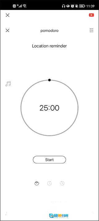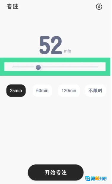 1. 开启极简待办,轻点底部的时钟图标。 2. 进入专注页面后,滑动滑块,对专注时间进行设置。