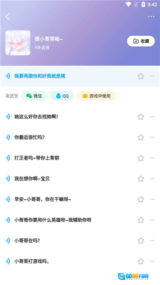 3、而每一个语言包中都含有多个语音,随时随地想听就听,还可以发送给你的好友;