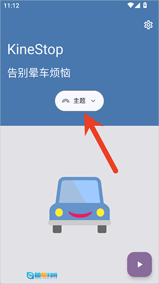 1. 打开之后无需进行注册登录,核心的防晕车功能可免费使用,使用时可先点击【主题】