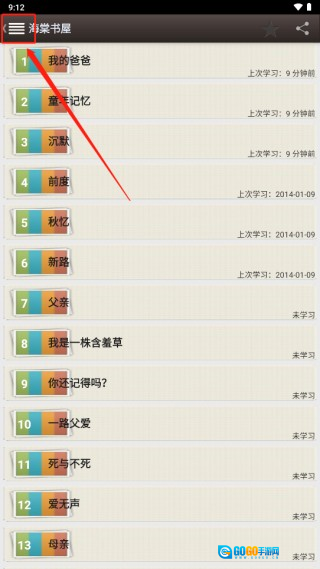 1. 开启海棠书屋,轻点左上方的四道横杠。