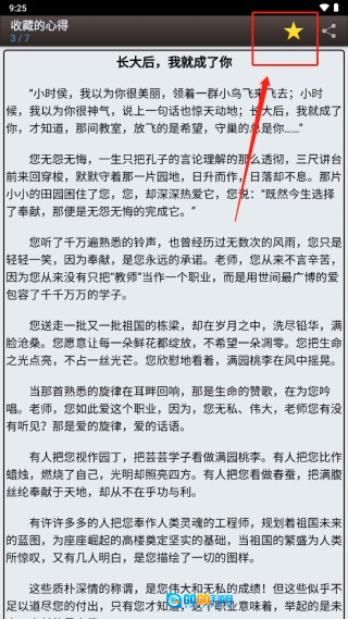 3、找到并点击你想要取消收藏的篇幅,例如《长大后,我就成了你》,接着点击图示中“黄星”所在的位置。