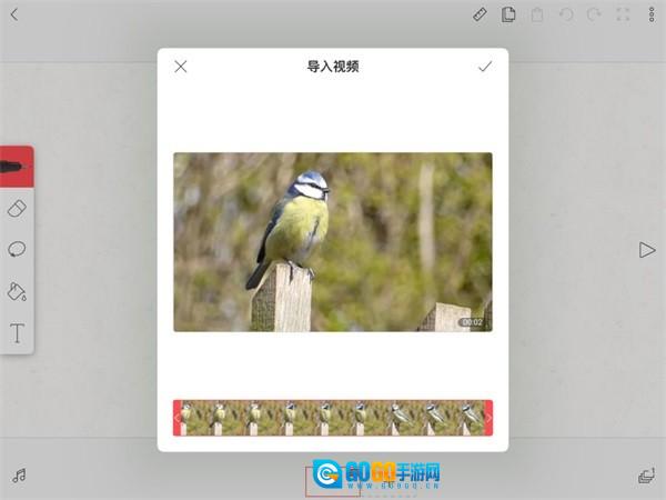 全部画完之后,点击预览,可以看到鸟就动了起来,如果需要做一些修改,可以长按下方帧缩略图,可以删除或者复制帧等。