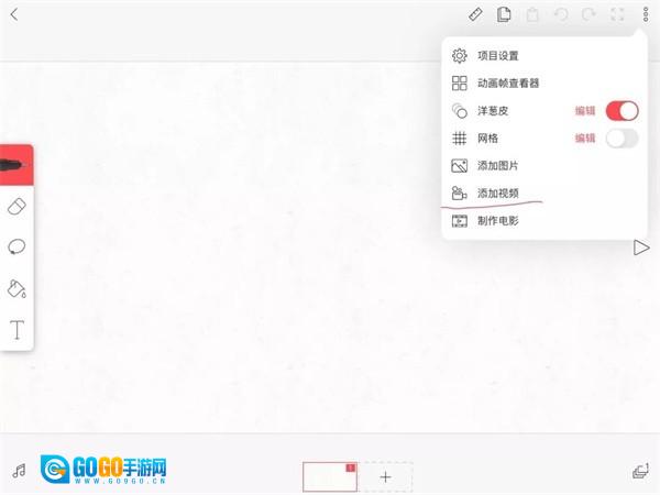 项目建好之后,我们进入了编辑界面,可以看到上方有画笔橡皮擦等工具,下方则是每帧的缩略图。