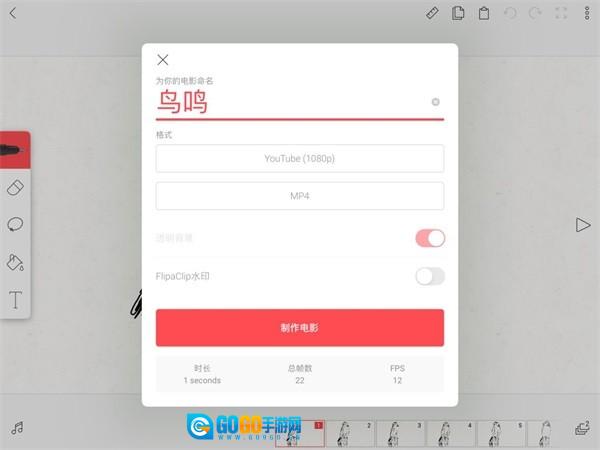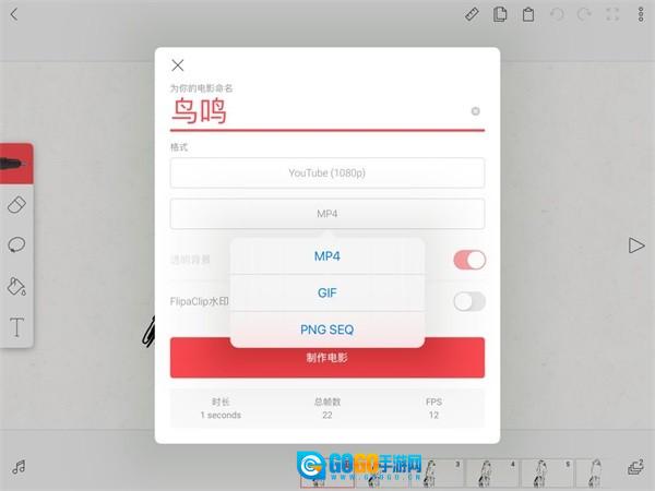 所有的编辑完成之后,我们点右上角的三个点,选择制作电影,就进入了导出选项,导出时可以选择不同的分辨率,还可以选择导出为动图或者png序列,但png序列需要付费功能。