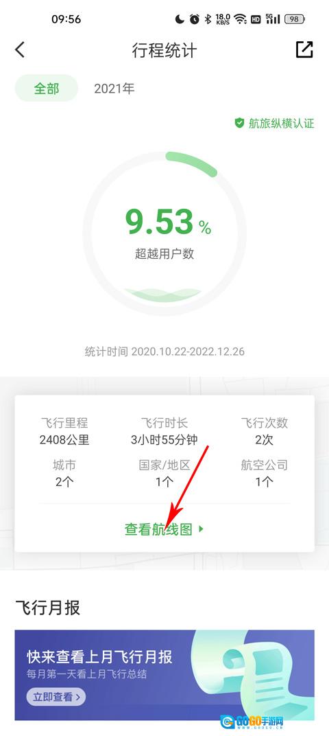 4、点击下方“查看航线图”,即可查看你所选年份一整年的线路统计图。