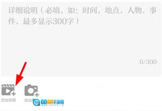 2、当您进入报料页面后,在如图所示的位置找到【添加视频】功能按钮,这样就能完成报料。