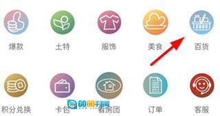 2. 当进入商城页面之后,点击处于如图所示位置的【百货】按钮。