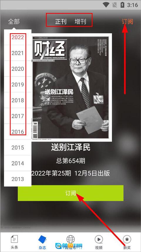 2、当进入杂志页面后,能看到订阅类型分为正刊与增刊。此时,既可以点击左上角的“全部”选项,依据年份进行订阅;也能够直接订阅当前最新的一期。点击“订阅”按钮,即可进入下一步。