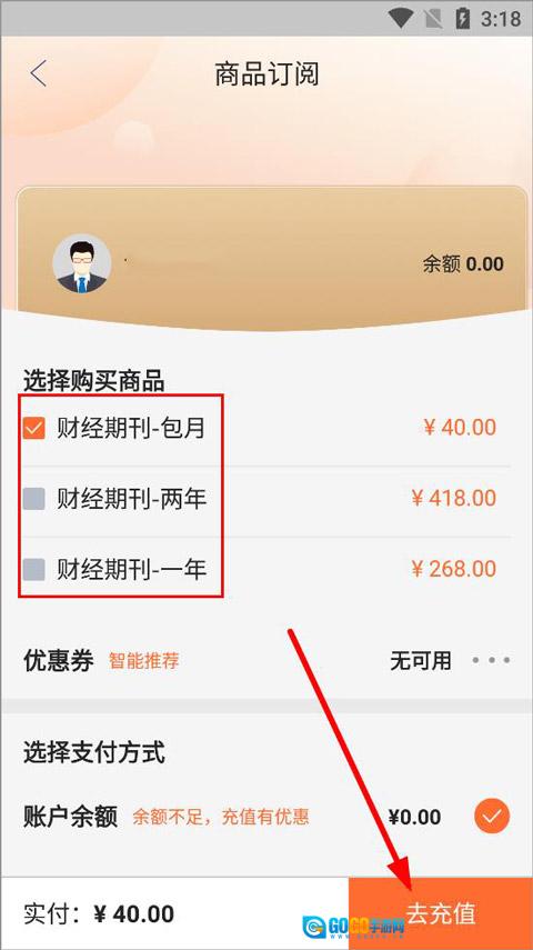 3、进入订阅页面,商品订阅有财经期刊包月、一年、两年等多种时长选项。用户可依据自身实际情况,选择合适的订阅方式,再挑选支付方式完成支付,即可订阅成功。