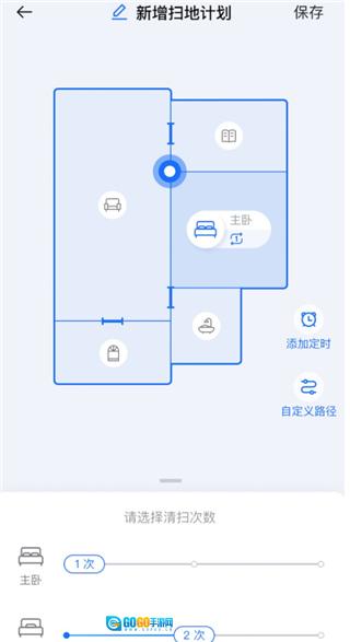 3、在地图上选定需要清洁的房间,机器人便会依据所选房间,自动规划出最优的清洁顺序。同时,还能对选中房间的清洁次数进行设置,可在1 - 3次之间选择。