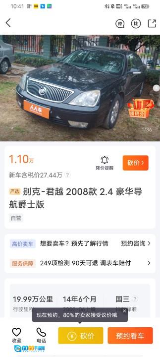 4、进入车辆详细界面,其中设有砍价和预约看车功能,通过这两个功能都能联系卖家。