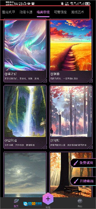 输入一段文字,比如“一个梦幻美少女”,就可以绘画画作,各种风格、次元、素描、超现实、中国风、写实等风格画作等你来挑选,帮助你实现画师梦。