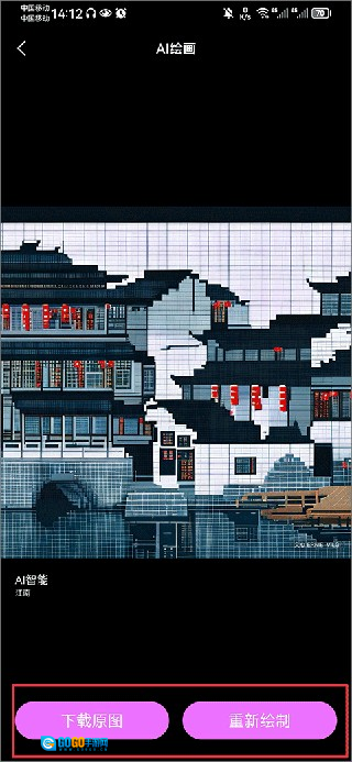 3、之后系统就会为你自动生成一张绘画啦,喜欢的话可以直接将它至手机相册中,若不满意还可以点击重新绘制重新绘制满意的绘画