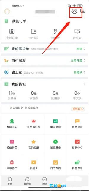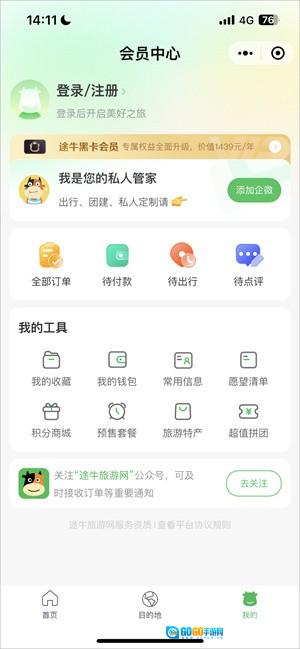 1. 开启途牛旅游应用,轻点【我的】选项。