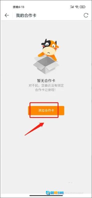 4、进入“我的合作卡”页面,点击【添加合作卡】按钮。