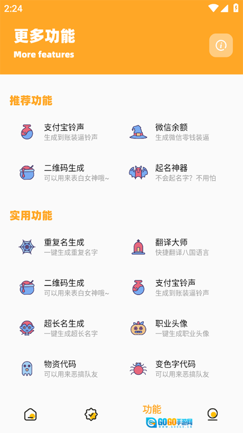 5、芝麻画质怪兽里面还提供多种小功能供用户使用,比如二维码生成、起名神器、物资代码等功能用户都可以来体验使用。