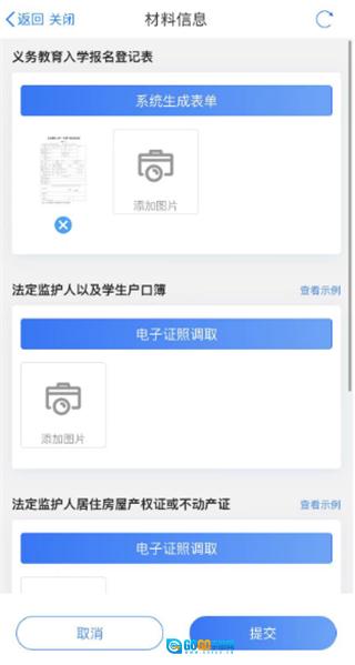 第五步,进行材料信息上传。在图6中,点击材料信息后的“去填写”,随即进入材料信息上传页面。此页面中,报名登记表会由系统自动生成。像户口簿、房屋不动产证、出生医学证明等材料,若条件允许,系统会从电子证照库自动获取。要是未能自动获取到相关材料,可点击“电子证照调取”按钮尝试获取。若点击该按钮后,仍无法调取到电子材料,那就可以通过手动拍照的方式上传材料。需要注意的是,上传的材料照片,必须能清晰显示材料上的各项相关信息。完成照片上传操作后,点击提交,即完成材料信息上传流程。