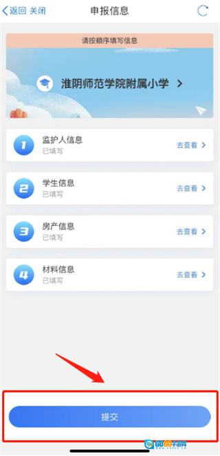 (5)按照系统设定的流程,第一步选择学校,随后依次填报监护人信息、学生信息、房产信息以及材料信息,完成后进行在线提交。