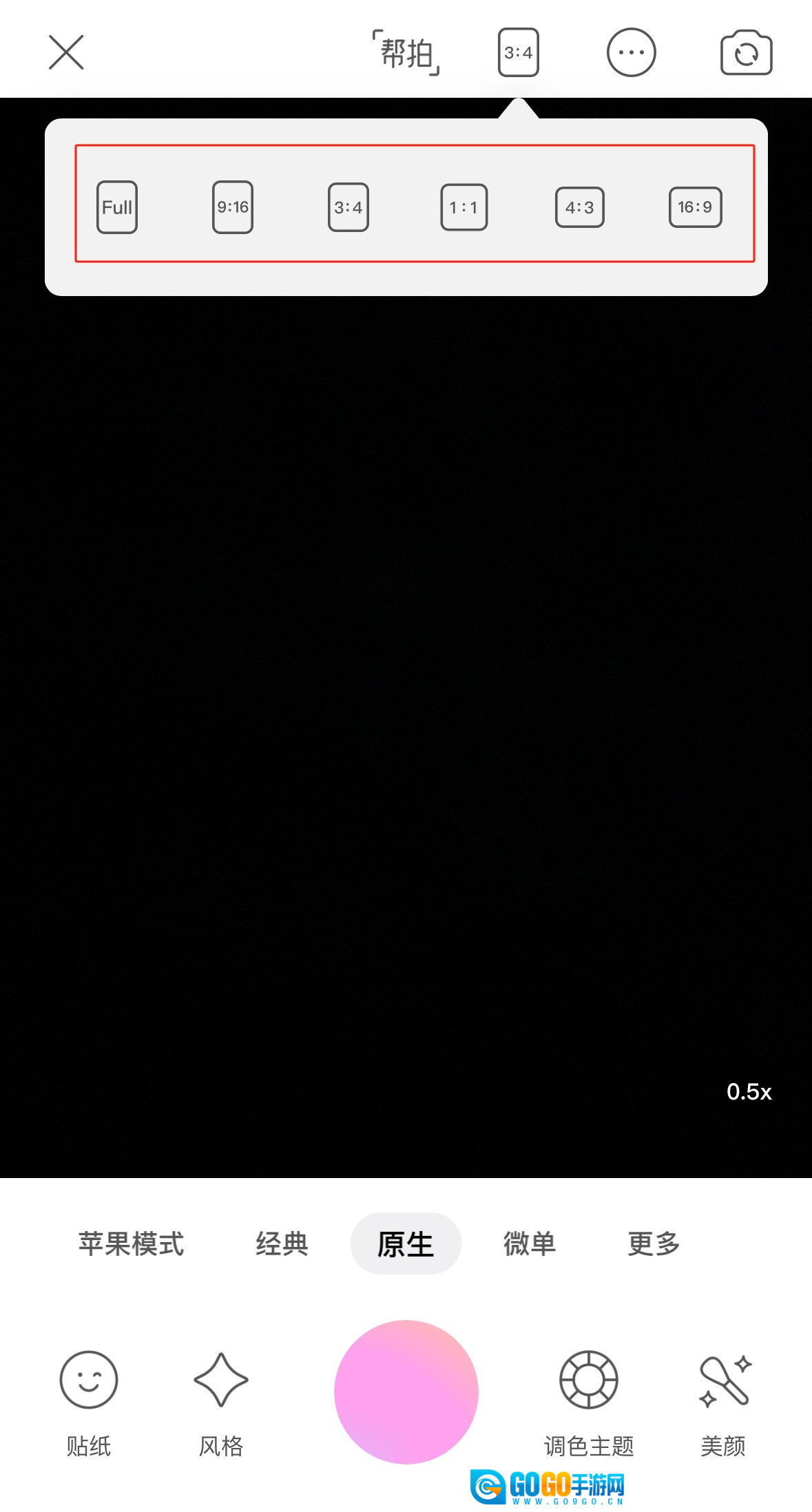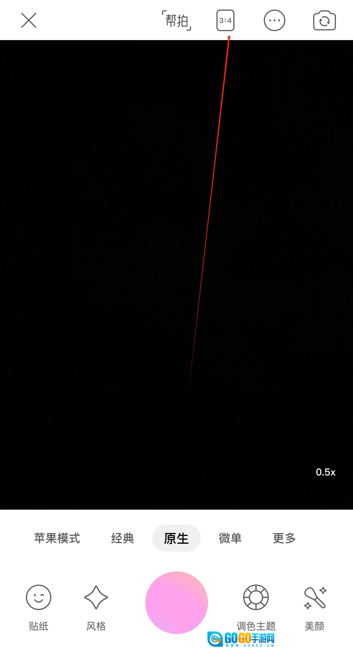 2、在拍照的模式的右上角有个省略号圆圈的图标,点击进去;