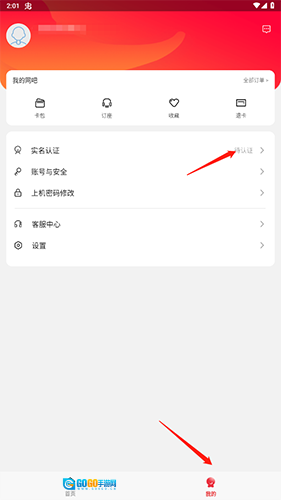 1、打开软件,点击“我的”选项,然后点击“实名认证”选项。